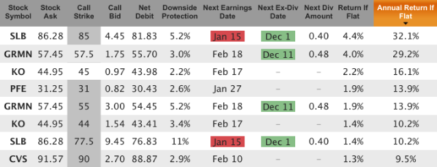 For a longer covered call, say 2 months until the January 17, 2015, expiration, here are some double-digit annualized yields: